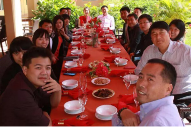 婚禮那天,餐館里坐滿了我的同事,老板特意換上了中國紅的新桌布,妻子換上專門從國內(nèi)帶來的紅旗袍,喜氣的中國紅讓我們找到家鄉(xiāng)的味道。