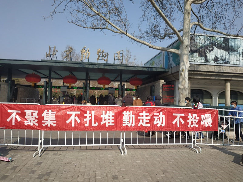北京動(dòng)物園南門(mén),游客正在按照防疫規(guī)定有序入園。 人民網(wǎng)記者 孫紅麗攝
