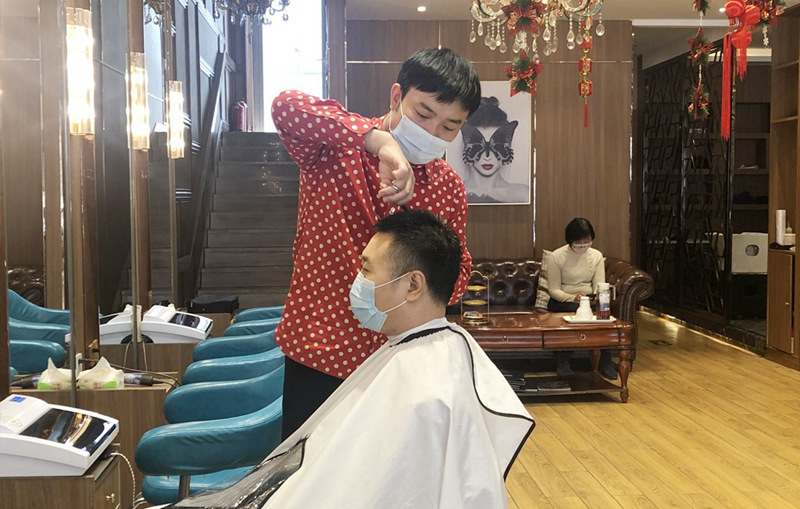 我國(guó)目前的新冠肺炎防控成果來(lái)之不易,離不開(kāi)每個(gè)人的辛勤付出。在春節(jié)期間北京市的一家理發(fā)店內(nèi),顧客和發(fā)型師嚴(yán)格遵守防疫要求,在洗頭、剪發(fā)的全過(guò)程中,始終佩戴口罩。每位發(fā)型師身前的桌子上,都設(shè)有為剪刀等工具消毒的機(jī)器,做到“每客一換”。顧客的等候區(qū)也刻意留出單獨(dú)區(qū)域,與他人之間保持有效的安全距離。