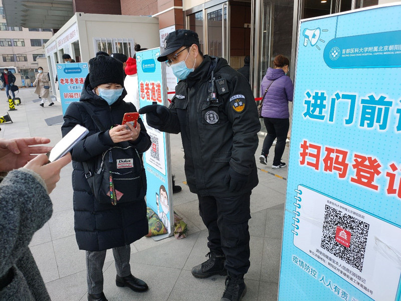 春節(jié)期間,北京朝陽(yáng)醫(yī)院就診患者依然很多!拔也粫(huì)用智能手機(jī),怎么進(jìn)醫(yī)院?”一名60歲左右的患者因不會(huì)使用健康碼而著急不已!鞍⒁,別急,您可以從小程序里面找到健康碼,也可以從旁邊的‘老年通道’進(jìn)入醫(yī)院!痹诎脖H藛T的引導(dǎo)下,患者順利經(jīng)過(guò)體溫檢測(cè)等程序進(jìn)入醫(yī)院。