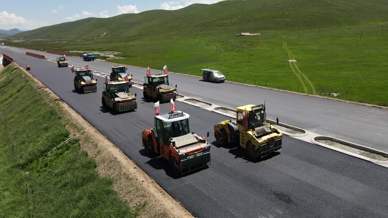 10月16日,最后一車瀝青混凝土鋪筑完成,G0611同仁至賽爾龍段高速公路2025年計劃通車的同仁至西卜沙、麥秀山至賽爾龍段路面工程鋪筑任務全面完成。