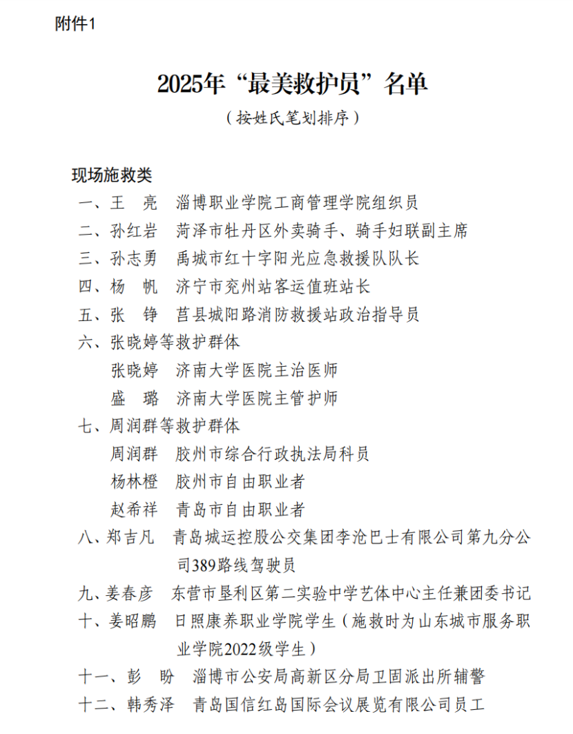 街頭突發(fā)意外,總有人飛奔施救;夜市擺起“地攤”,教的都是“救命技能”。近日,由山東省紅十字會、省愛衛(wèi)辦、省教育廳、省衛(wèi)生健康委、省應(yīng)急管理廳聯(lián)合開展的2025年度“最美救護(hù)員”推選活動結(jié)果揭曉,淄博職業(yè)學(xué)院王亮、菏澤市牡丹區(qū)外賣騎手孫紅巖等20名救護(hù)員(或群體)榮獲年度“最美救護(hù)員”稱號。同時,活動還評選出“優(yōu)秀救護(hù)員”40名(或群體),濰坊市紅十字心跳行動志愿服務(wù)隊榮獲“最美救護(hù)員特別獎”。