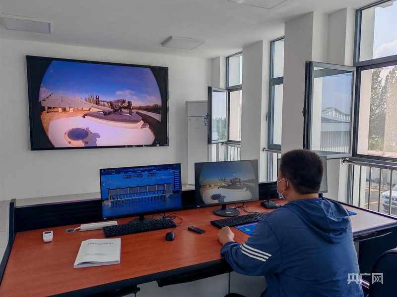 工作人員遠(yuǎn)程控制無人機(jī)巡檢(央廣網(wǎng)發(fā) 濟(jì)寧市水利事業(yè)發(fā)展中心供圖)