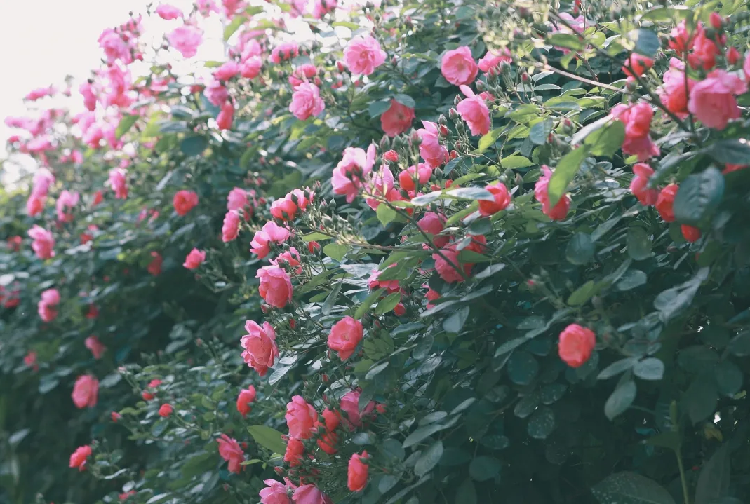 沿著云安路步道前行,一側竟有面悄然盛放的薔薇花墻。這里的花屬于藤本月季,花成大型,由內向外呈發(fā)散型。一邊運動,一邊欣賞姹紫嫣紅的薔薇花,真是一種美好的享受呢~