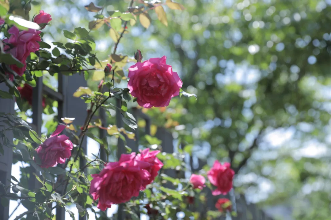 嘉定老城區(qū)的中心路段,一大片薔薇花隱匿在居民住宅樓前,繞過綠色的柵欄,努力向來往市民傳達盎然的春意。無須特意駐足,醉人的清香也會隨著微風沁入心脾,為你抹去工作的疲憊。