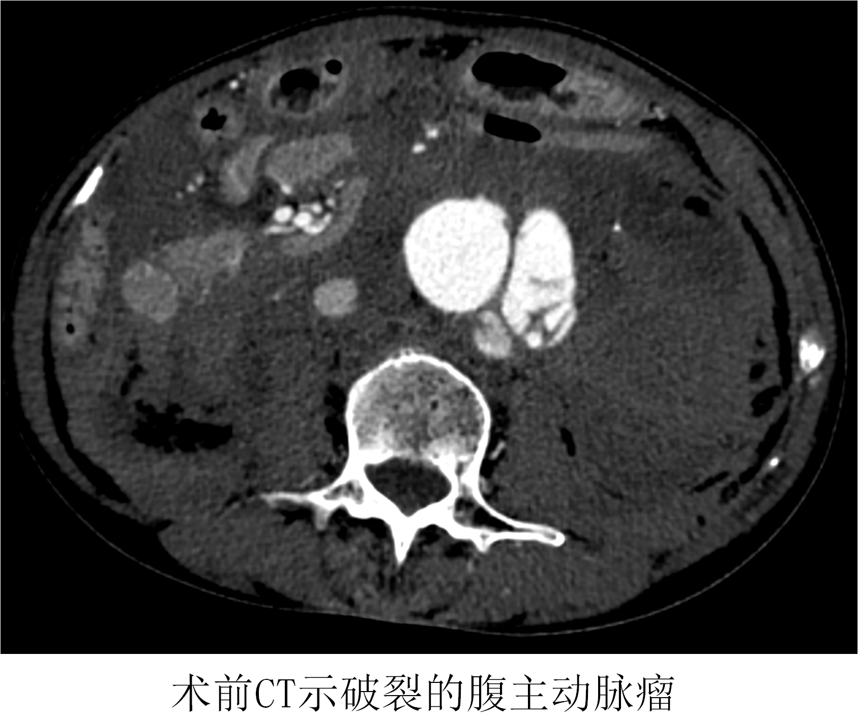 時(shí)間就是生命!在來(lái)不及全麻的情況下,薛冠華當(dāng)機(jī)立斷,局麻手術(shù)。手術(shù)由薛冠華主刀、倪其泓和王預(yù)立醫(yī)師共同協(xié)助,在麻醉醫(yī)師黃丹、手術(shù)室護(hù)士夏悅和放射科技師馬鋆的配合下緊張進(jìn)行。薛冠華通過(guò)精準(zhǔn)定位,在避免影響內(nèi)臟血管的同時(shí),采用腔內(nèi)技術(shù)在短短30分鐘內(nèi)就將腹主動(dòng)脈瘤的破口通過(guò)覆膜支架封堵,有效阻止了進(jìn)一步出血;颊叩难獕洪_(kāi)始回升,情況逐漸平穩(wěn),手術(shù)順利完成;颊咿D(zhuǎn)入重癥監(jiān)護(hù)室后意識(shí)慢慢恢復(fù),術(shù)后10天復(fù)查CT顯示破裂的腹主動(dòng)脈瘤隔絕良好,已于近期康復(fù)出院。