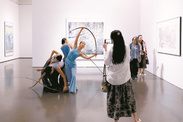“廣東美術(shù)百年大展”現(xiàn)場的藝術(shù)演出 (王凱 攝)