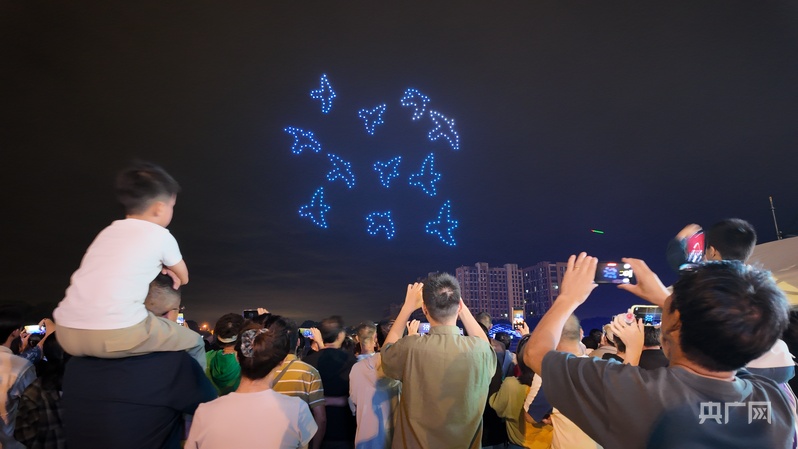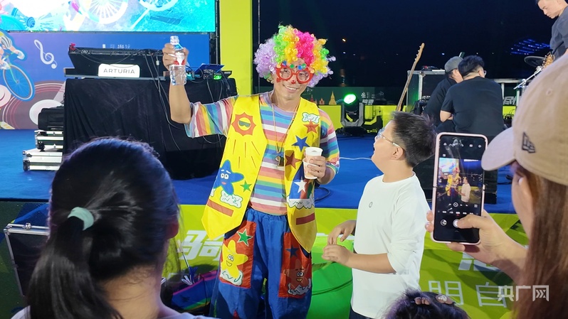 世界冠軍同款水壺、體育明星用過的騎行裝備……一件件拍賣品從1元被叫價到30元、80元,“二手裝備拍賣”環(huán)節(jié)深化綠色消費理念;“熒光夜騎”隊伍在夜色之中形成流動的光影,在賽事期間展現(xiàn)大眾騎行的活力與美感;“體驗市集”則匯聚崇明本地特色美食、精美文創(chuàng)產(chǎn)品和各類騎行裝備,滿足不同年齡段游客需求;最受矚目的是“無人機夢幻秀”,300架無人機在夜空中編隊,不僅勾勒出騎行的動感瞬間,更將崇明的生態(tài)景觀、旅游資源等意象化圖案描繪于天際,引來觀眾陣陣驚呼。