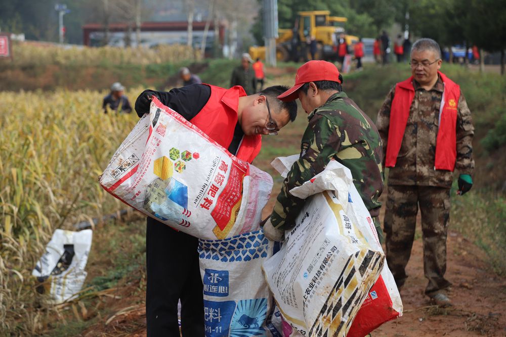 與此同時(shí),一抹抹志愿紅的身影也活躍在南凹村的谷子地里。了解到秋收時(shí)間緊、任務(wù)重,鎮(zhèn)政府迅速組織干部職工組成志愿服務(wù)隊(duì),下沉到秋收一線,與村民們并肩作戰(zhàn)。他們挽起褲腳,拿起農(nóng)具,有的負(fù)責(zé)收割,有的負(fù)責(zé)捆綁,有的負(fù)責(zé)運(yùn)輸,雖然動(dòng)作不如老農(nóng)嫻熟,但個(gè)個(gè)干勁十足!叭罕姷氖戮褪俏覀兊氖隆,F(xiàn)在最緊急的工作就是搶收,幫農(nóng)戶把糧食收回來,我們心里才踏實(shí)!鼻咧蔹S鎮(zhèn)鎮(zhèn)政府工作人員畢茹茹說到。截至目前,南凹村800余畝谷子已搶收過半。