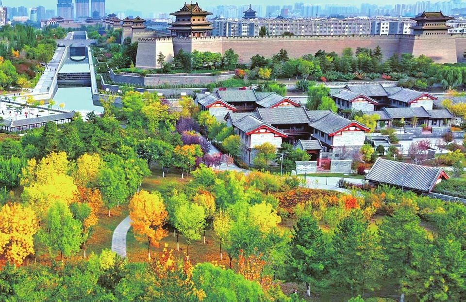 時(shí)下,大同城墻帶狀公園迎來(lái)最佳賞秋季。紅的海棠、黃的國(guó)槐、綠的松柏交織輝映。護(hù)城河波光粼粼,倒映著古城墻與湛藍(lán)天空,成為熱門打卡點(diǎn)。(劉通 張占兵)