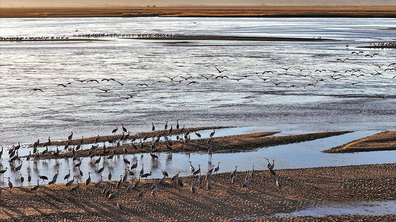 除了常住居民白鷺、綠頭鴨等留鳥外,一群群天鵝、大雁等候鳥翩躚而至,它們或在水面嬉戲、或在沙洲休憩、或在空中盤旋,為母親河增添了無(wú)限生機(jī)。