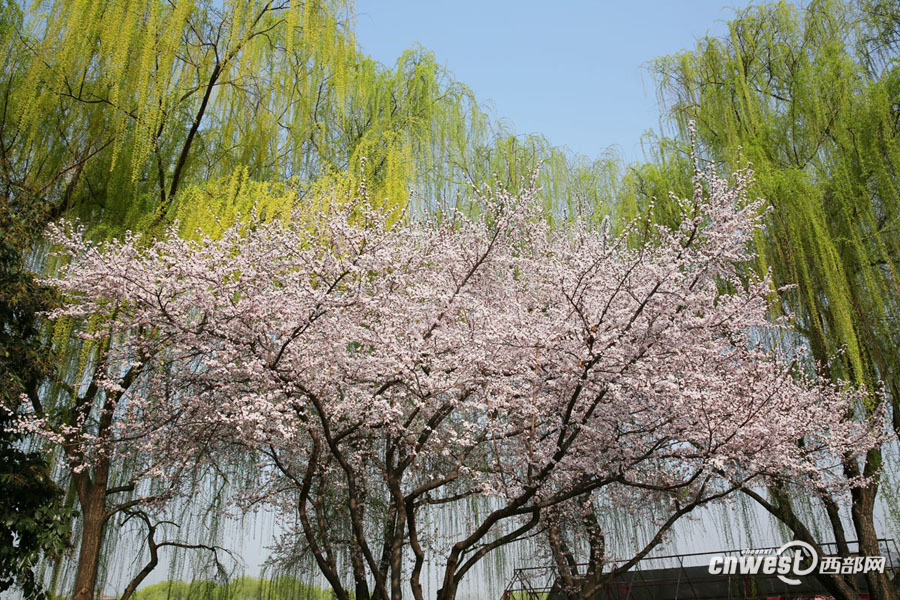 3月15日,西安大唐芙蓉園花紅柳綠,滿園春色與唐風(fēng)古韻的建筑融合在一起,嫵媚醉人。 西部網(wǎng)訊(記者 魏永賢)陜西連續(xù)近一周的艷陽天,讓氣溫迅速回暖,柳條抽新芽,多地櫻花、桃花相繼開放。3月15日,西安大唐芙蓉園里花紅柳綠,滿園春色與唐風(fēng)古韻的建筑融合在一起,嫵媚醉人。 -
