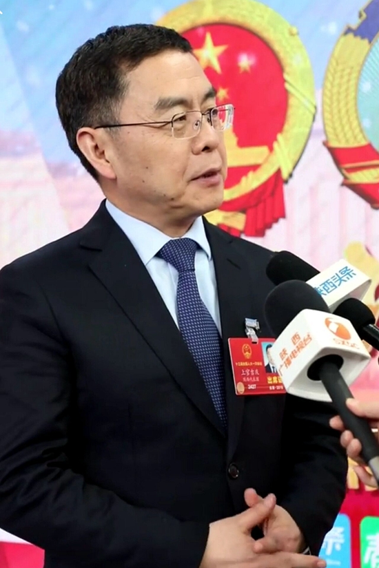 全國(guó)人大代表、西安市市長(zhǎng)上官吉慶接受采訪。