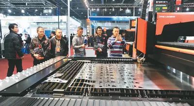 圖為第三屆廣東國(guó)際機(jī)器人及智能裝備博覽會(huì)上展出的大型智能化制造機(jī)。記者 賀林平 攝