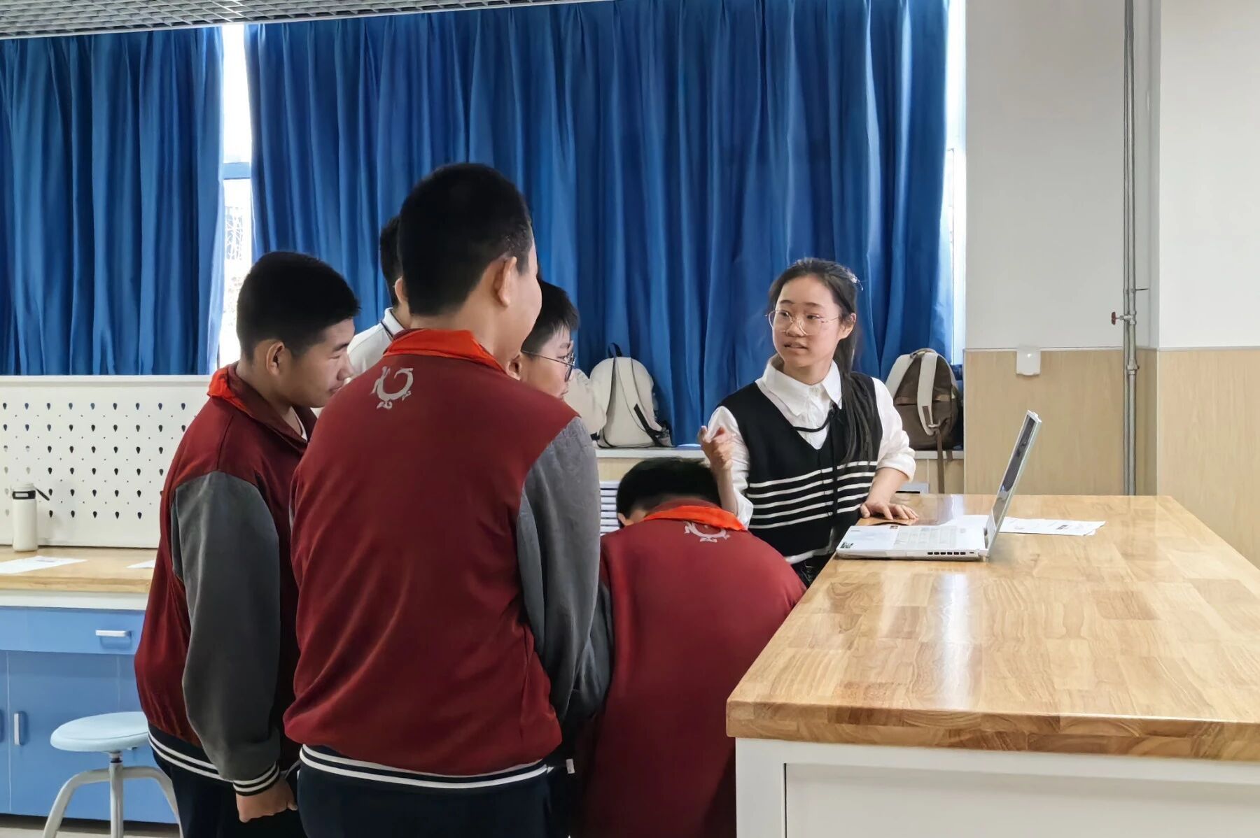在師大附校一年級(jí)課堂,服務(wù)團(tuán)秉持“玩中學(xué)、學(xué)中創(chuàng)”理念,以故事化場景和游戲化形式授課,涵蓋AI生成圖畫、音樂創(chuàng)作、語音交互等內(nèi)容。孩子們化身“森林魔法師”“AI飛船小船長”,在奇幻故事里學(xué)習(xí)大模型指令設(shè)計(jì),在“課本星球救援”任務(wù)中設(shè)計(jì)生日海報(bào)、構(gòu)想夢想兒童房,下課仍流連于AI設(shè)備旁,感受科技魅力。昆明路小學(xué)的課程則聚焦“AIGC與具身智能”,25課時(shí)的教學(xué)中,五、六年級(jí)學(xué)生通過搭建智能裝置、編寫圖形化程序、小組協(xié)作完成任務(wù),在“看得見、摸得著”的實(shí)踐里理解AI算法,提升創(chuàng)新能力。赤龍中學(xué)的課程則與“第十一屆全國青年科普創(chuàng)新實(shí)驗(yàn)暨作品大賽”相結(jié)合,團(tuán)隊(duì)分為“研裝組”與“協(xié)導(dǎo)組”:研裝組攻克太空車減重120克的難題,協(xié)導(dǎo)組將大賽知識(shí)拆解為“學(xué)習(xí)圖譜”,以“以賽促學(xué)”模式幫助七年級(jí)學(xué)生掌握AI技能,培養(yǎng)團(tuán)隊(duì)協(xié)作力。