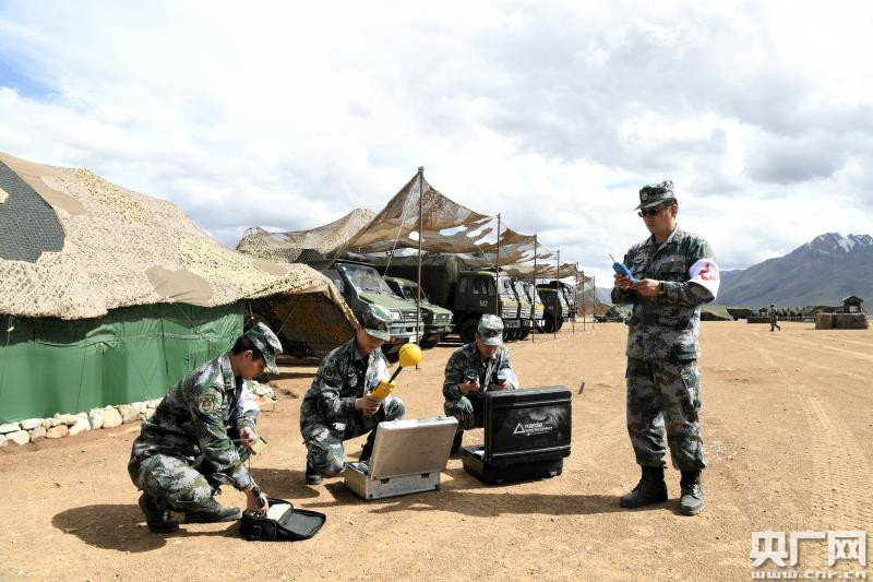 隊員檢測部隊駐訓(xùn)地情況(央廣網(wǎng)發(fā) 李文越 攝)