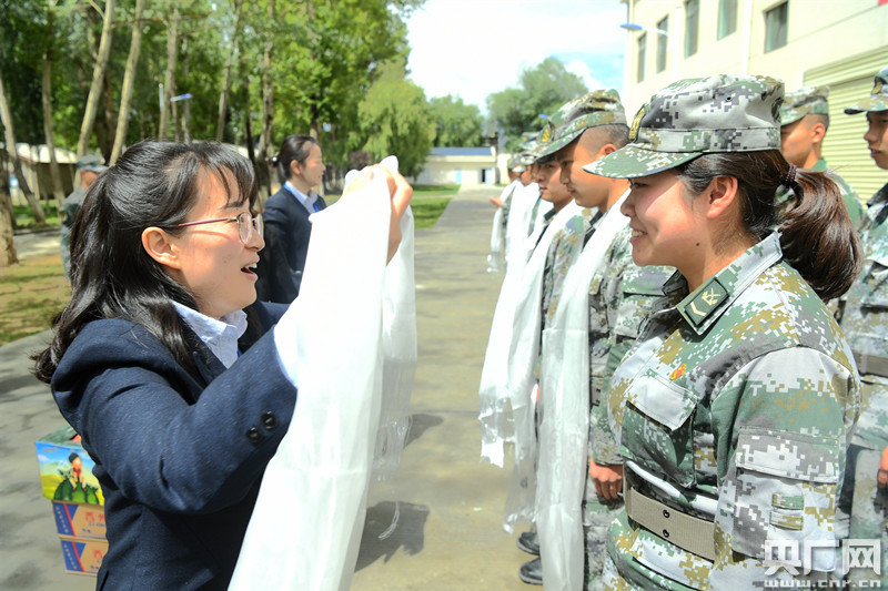西藏移動公司代表向部隊官兵敬獻哈達(央廣網(wǎng)發(fā) 張博倫 攝)