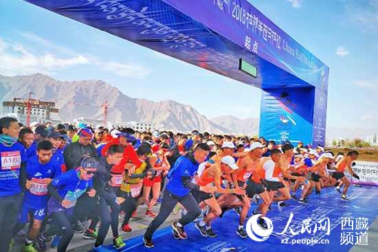 人民網(wǎng)拉薩11月12日電 11日上午,2018拉薩半程馬拉松賽在海拔3650多米的拉薩鳴槍開跑,共有來自全國各地的3200多名選手參賽。本次賽事以“動感魅力拉薩、共享健康生活、奔跑地球第三極”為主題,共設(shè)有半程馬拉松(21.0975公里)、體驗(yàn)組(10公里)、健康跑(5公里)三個(gè)組別。