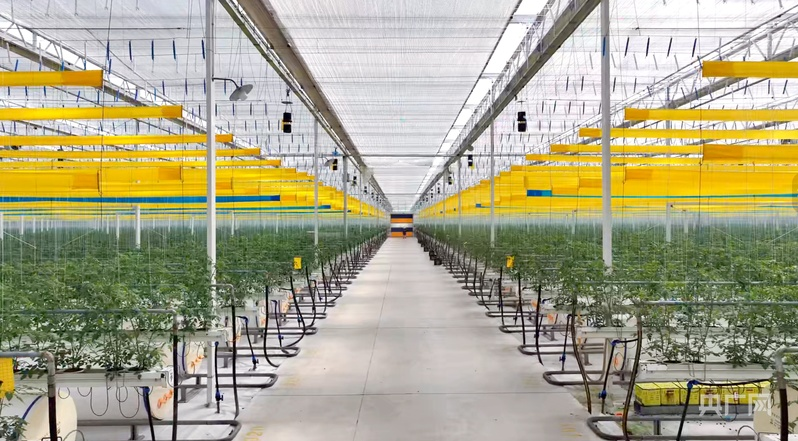 該溫室大棚的生產(chǎn)主管張亮正仰頭查看電腦屏幕,溫度、光照、水肥等20多項數(shù)據(jù)實時跳動,滴箭裝置精準(zhǔn)地將營養(yǎng)液輸送到每株作物根部!胺焉L需要什么,系統(tǒng)比我們更早知道。通過環(huán)境精準(zhǔn)控制,這里的番茄可以實現(xiàn)周年生長,在同等面積下,智能溫室大棚里的番茄產(chǎn)量遠高于傳統(tǒng)大棚!睆埩琳f。