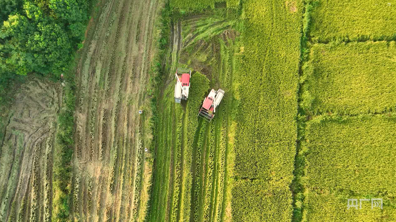 全國糧食生產(chǎn)大縣安徽安慶望江縣單季稻收割進行中(央廣網(wǎng)記者 周然 攝)