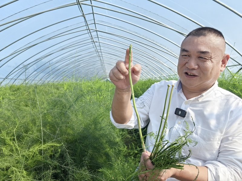 楊兵介紹蘆筍種植(央廣網(wǎng)記者 張琳琳 攝)